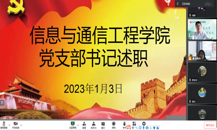 党委在腾讯会议平台召开了2022年度党支部书记述职报告会,13位党支部书记就本支部的年度工作开展情况进行了总结汇报。学院党委委员、各党支部书记参加了会议。学院党委书记曹凤才主持会议。