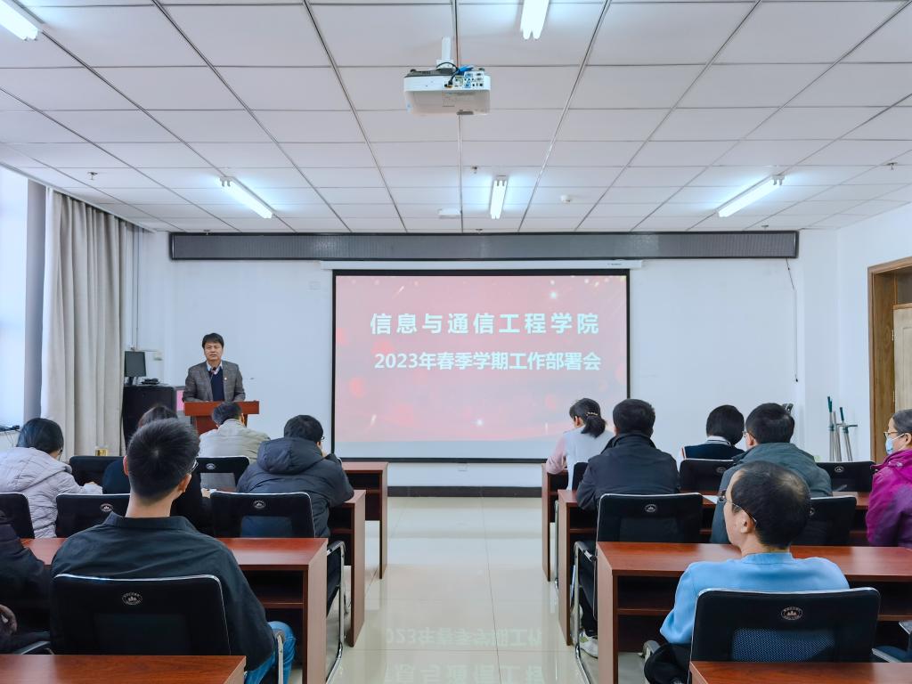 院长杨风暴总结学院2022年在疫情防控、学科建设、教研教学、科学研究以及学科竞赛等方面取得成果,并对2023年学院重点工作进行了详细部署。新学期,教学工作平稳有序进行,认真准备电子信息工程专业工程认证进校考察,鼓励全院教师积极参与教学大赛以及项目申报;加强科研工作,注重科研成果转化,提高各类基金申报和审批数量,提升研究生培养质量,促进军工企业联合培养。希望全院教职工齐心协力,精诚合作,圆满完成本学期的工作任务,为学校建设“双一流”高校贡献力量。