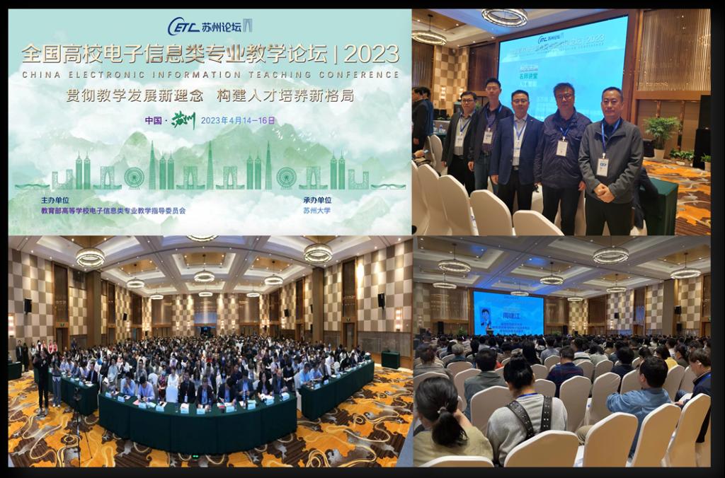2023年4月14-16日,第六届全国高校电子信息类专业教学论坛在苏州召开,本次论坛主题为“贯彻教学发展新理念,构建人才培养新格局”, 论坛是由教育部高等学校电子信息类专业教学指导委员会主办,苏州大学承办。电子信息教指委王志军副主任、邓成秘书长、周建江委员及光电教指分委张亚萍委员应邀出席,来自全国300余所高校的600余位电子信息相关专业院校领导、专业负责人及骨干教师共同分享交流电子信息类专业建设与改革实践经验。我校麻豆a片