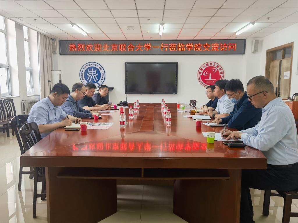 座谈会上,党委书记曹凤才对北京联合大学一行到来表示热烈欢迎,并详细介绍了学院的发展历程、科学研究、专业建设、师资队伍等情况。北京联合大学机器人学院执行院长张建成介绍了机器人学院的科学研究、学院管理、专业建设和人才培养等情况。双方围绕人工智能专业培养方案、实验室建设、人才引进、学院激励机制建设和学生实习实训等内容开展了详细交流。