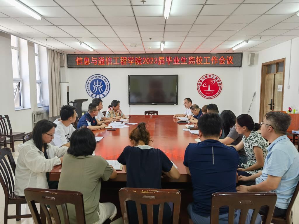 在科学楼713会议室召开2023届毕业生离校工作部署会。学院党委书记曹凤才、院长陈平、副书记兼副院长魏媛媛,各专业负责人、毕业班班主任和辅导员参加了会议。魏媛媛主持会议。