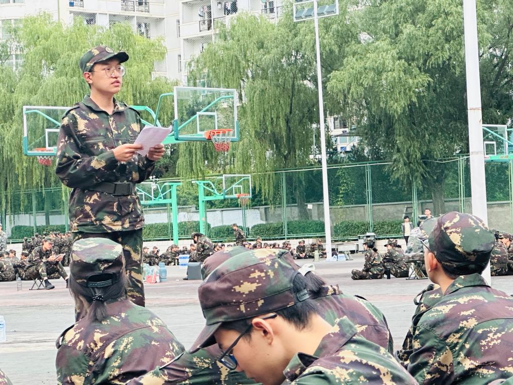 李鹏鑫介绍,他是学院2023级新生军训“宣讲队”的队长,队员们都是学院各连申请“跟训”的学生。据悉,“宣讲队”由指导员孟伟、左冠华、张昱发起成立,旨在让“跟训”的新生也积极参与到军训中。宣讲员会在各连队军训休息时段宣讲校情校史、学院优秀榜样事迹、学校评奖评优政策、推免政策、大学生规章制度、大学生征兵入伍政策等与新生未来大学四年生活息息相关的内容。