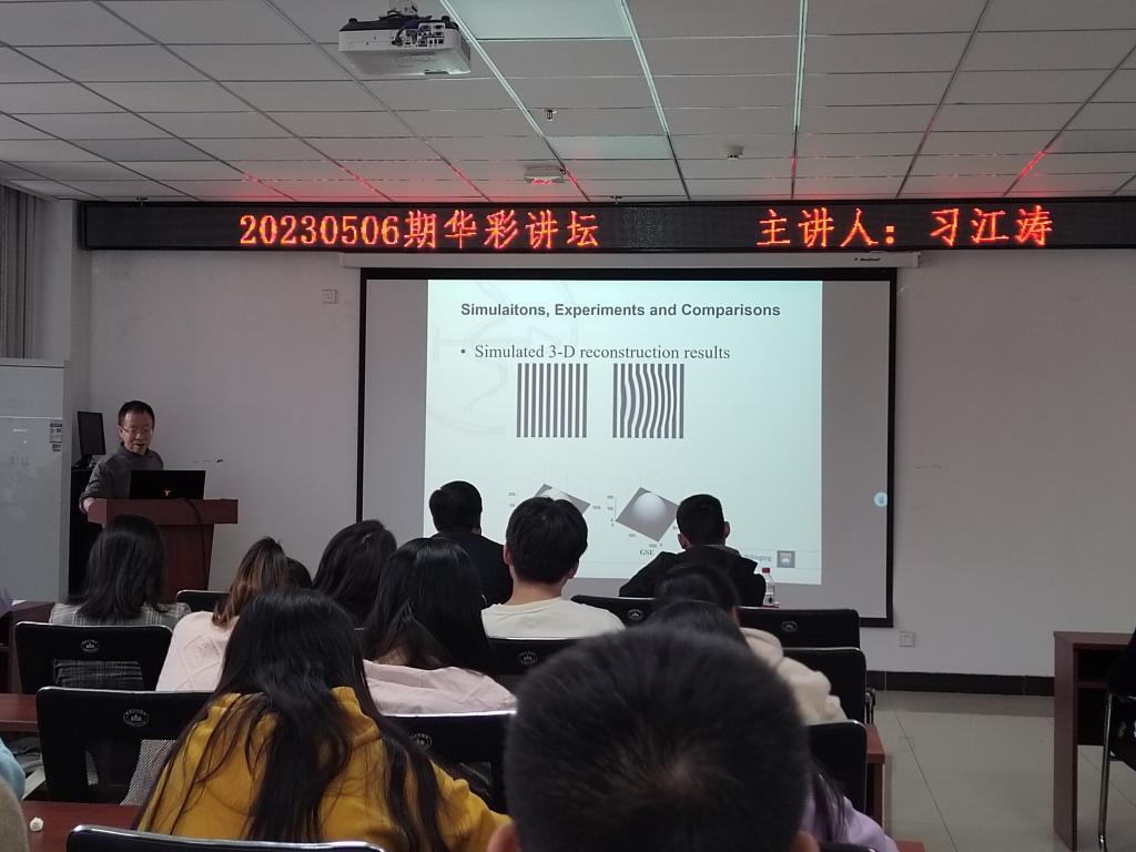 在科学楼B座715成功举办了研究生第20230506期华彩讲坛。本次讲坛特邀澳大利亚伍伦贡大学电气计算机与通信工程学院院长习江涛教授主讲,主题为《半导体激光器自混合干涉装置:原理和应用》,讲座由杨风暴教授主持,学院广大老师和研究生积极参与了此次学术讲座。