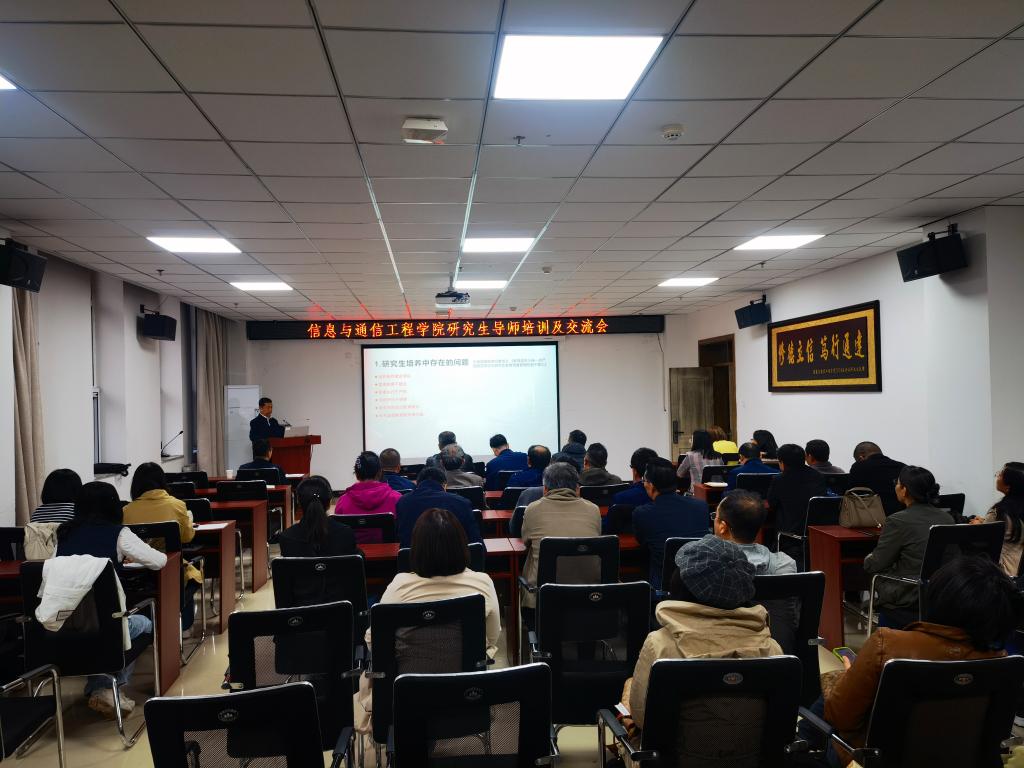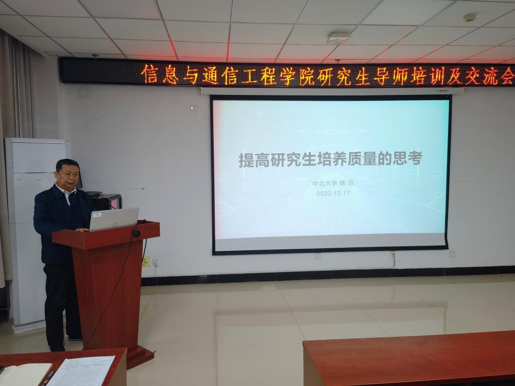 2023年10月17日下午,麻豆a片 在科学楼B座715学术报告厅召开了研究生导师培训及交流会,特邀请了信息与通信工程学科首席带头人韩焱教授作为主讲,会议由学院陈平院长主持,全体研究生导师积极参加了此次活动。