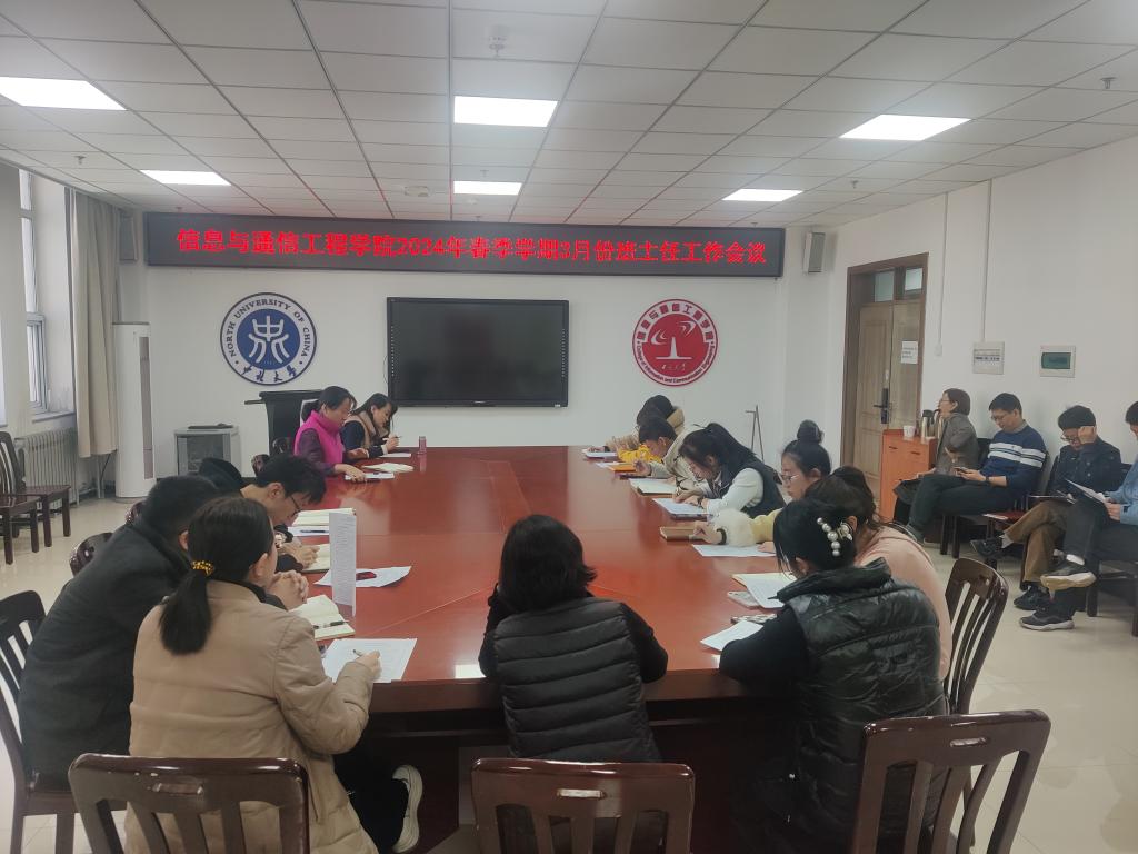 为进一步加强班主任队伍建设,充分发挥班主任在学院德育教育工作中的作用,3月1日上午,学院在院楼713会议室召开新学期班主任工作部署会。会议由院党委副书记魏媛媛主持,全体辅导员和班主任参加会议。