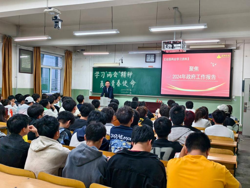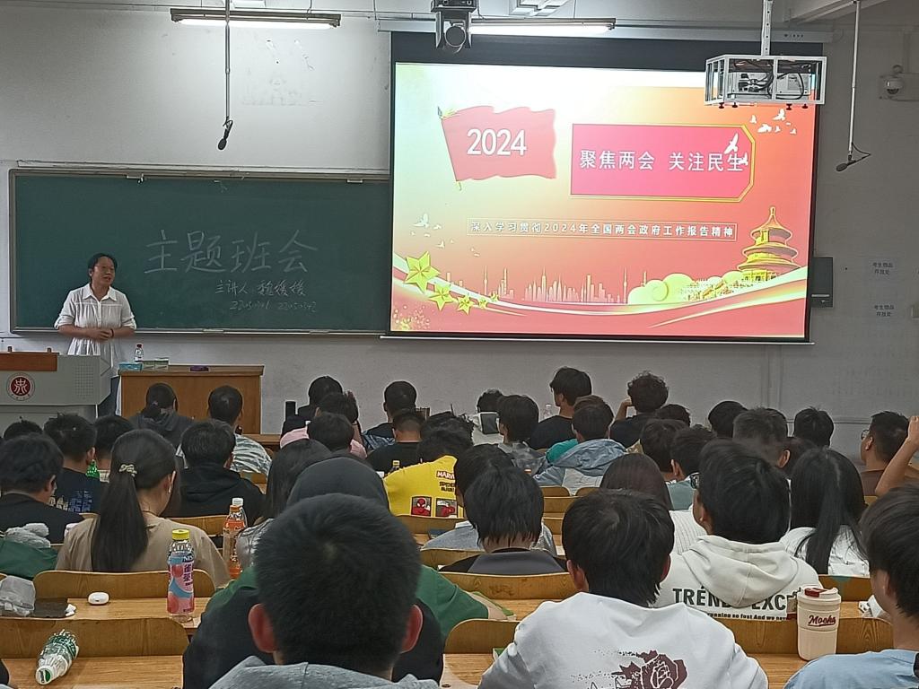 领导班子走进本科生班级开展“感悟两会精神 强化使命担当”主题班会。