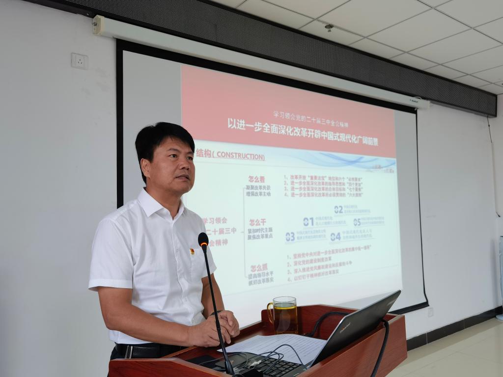 9月23日下午,学院党委书记曹凤才在科学楼B座715为研究生第二、第三党支部党员宣讲党的二十届三中全会精神。