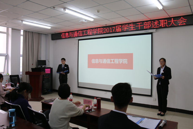 在院楼会议室举行17届学生干部述职大会。院党委副书记兼副院长魏媛媛、院团委闫婷老师、学生科任雁、柴锂娟、林乘庆老师及17届全体学生干部参加本次大会。