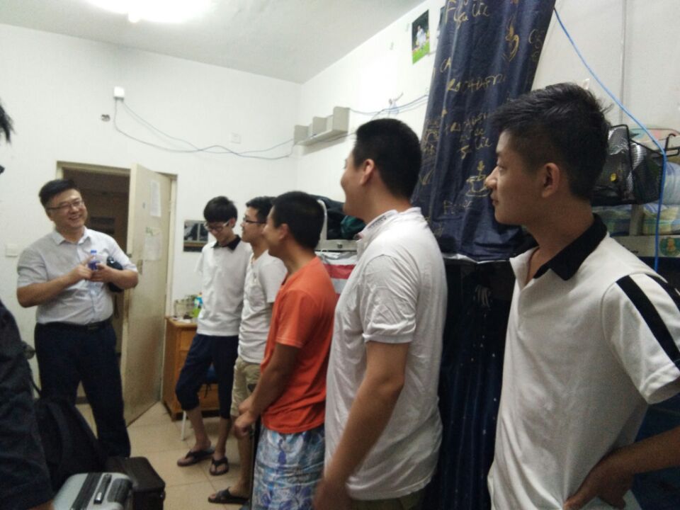 “离校前有什么困难需要协调?”、“在哪个单位工作?哪所学校读研究生?”、“马上要毕业了,对学院有什么建议?”、“路上注意安全”、“常回母校看看,关注学院发展”……学院领导和老师们一进学生宿舍就和毕业生们亲切交谈起来。学院领导逐个宿舍走访,详细了解每名毕业生的去向、离校安排、征求对学院发展的意见建议,希望他们关注学校发展,常回学院看看。同学们就近期离校期间遇到的问题和未来的发展与老师们深入交流。