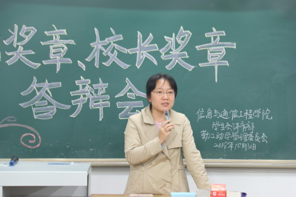 最后,学院党委副书记兼副院长魏媛媛对参加答辩同学在各方面取得的成绩予以肯定,并希望他们继续努力,做奋勇争先的信通人;她同时希望低年级的同学以优秀为榜样,学习他们的先进经验,走好将来的每一步。班干部要以身作则,互帮互助,营造良好的班级学习氛围,带动身边的同学,为学院良好学风的形成贡献力量。