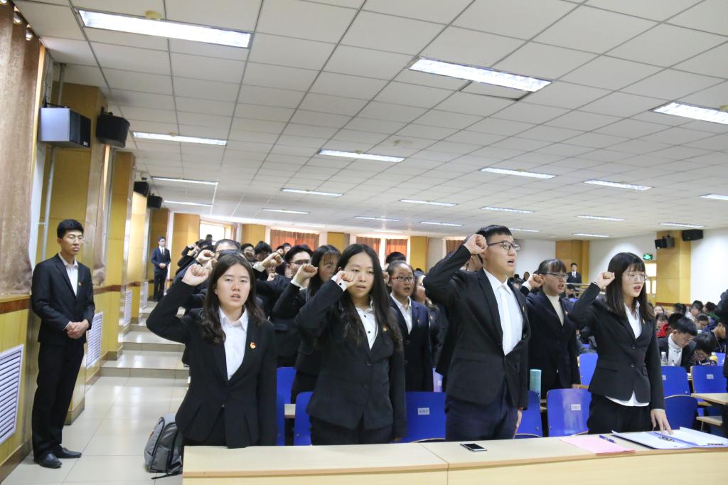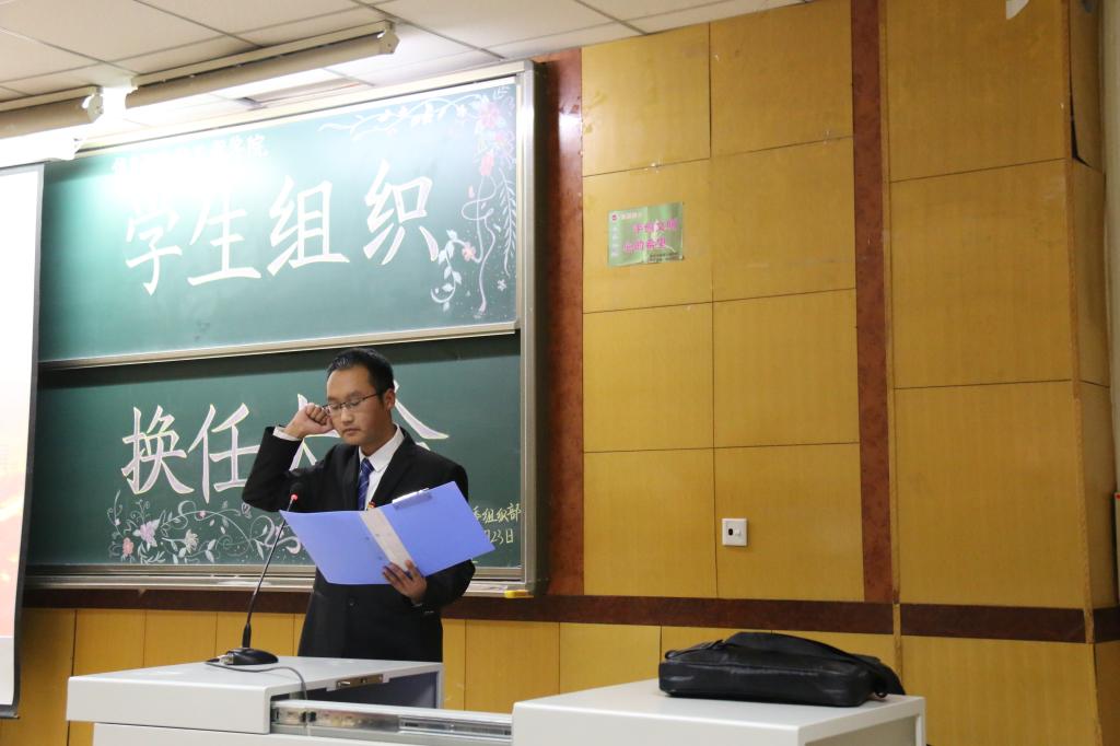 随后魏书记宣读了2017年度学生干部名单并为优秀学生干部代表颁奖。紧接着学生科科长任雁老师宣读学院学生组织干部的任命书,并由刘新璐同学带领全体学生干部宣誓,表明他们作为新一届学生干部为老师同学服务的决心。其后张馨方同学作为2018年度学生干部代表发言。
