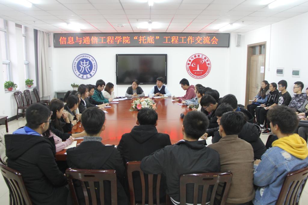 在科学楼713召开了“托底”工程工作交流会。院党委书记曹凤才老师、院党委副书记魏媛媛老师、学生科陈淑霞老师以及各个年级的团支书代表参加了本次会议。