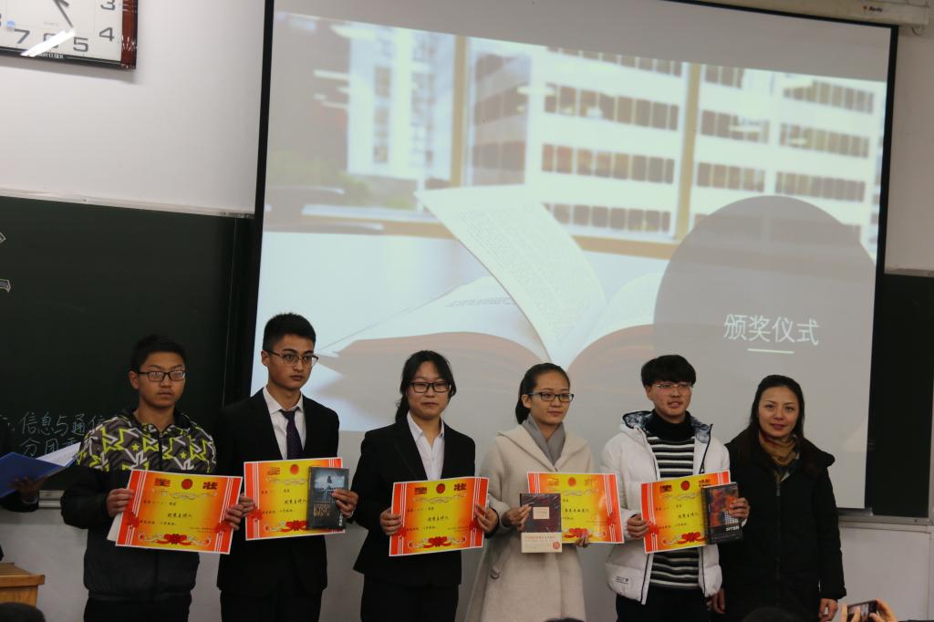 第二届“悦读悦美”读书工程闭幕式暨颁奖典礼于12月18日16:00在10201H教室顺利召开。出席本次活动的老师有学院党委副书记兼副院长魏媛媛老师,学生科科长任雁老师,学生科张永玲、陈淑霞、邢杰以及林乘庆老师。