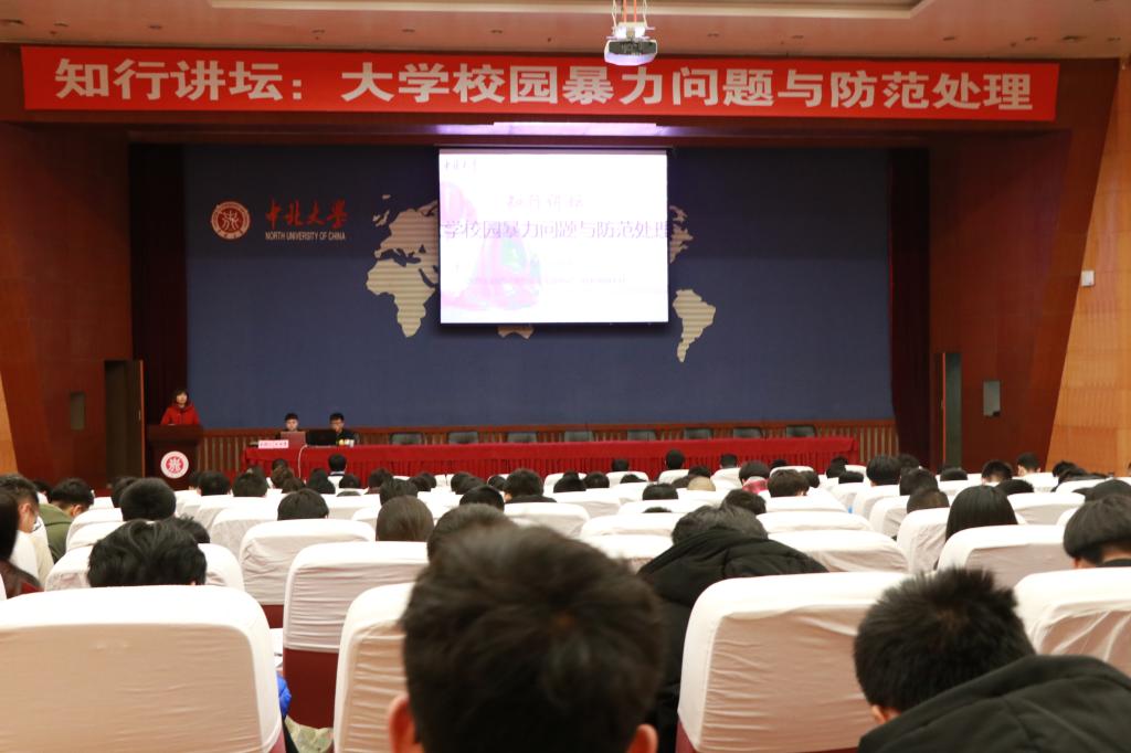 在图书馆五层学术报告厅举办了知行讲坛:大学校园暴力问题与防范处理。本次讲座特邀山西省弘韬律师所专职律师、山西省律师行业党委委员王百策律师担任主讲嘉宾。