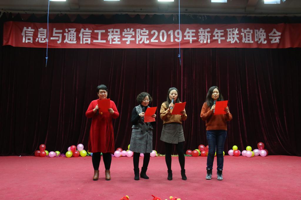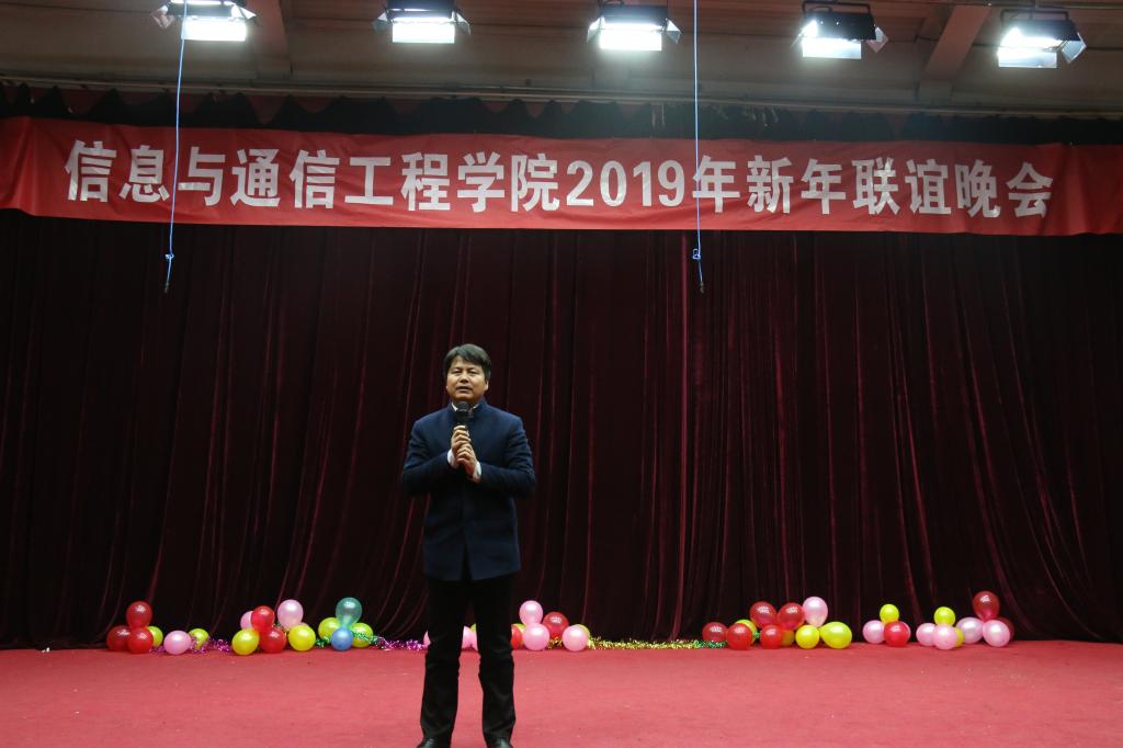首先,信息与通信工程首席学科带头人韩焱教授致开幕词,韩教授肯定了学院全体教职工的努力付出,并为老师们送上新春的祝福。学院院长杨风暴宣布2019年元旦联谊会开幕。