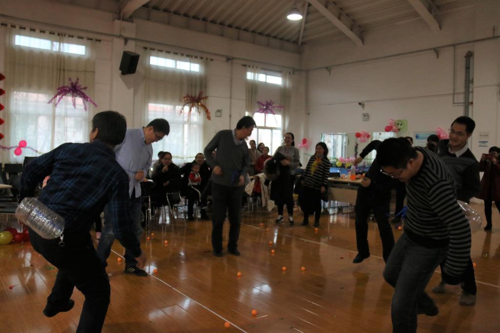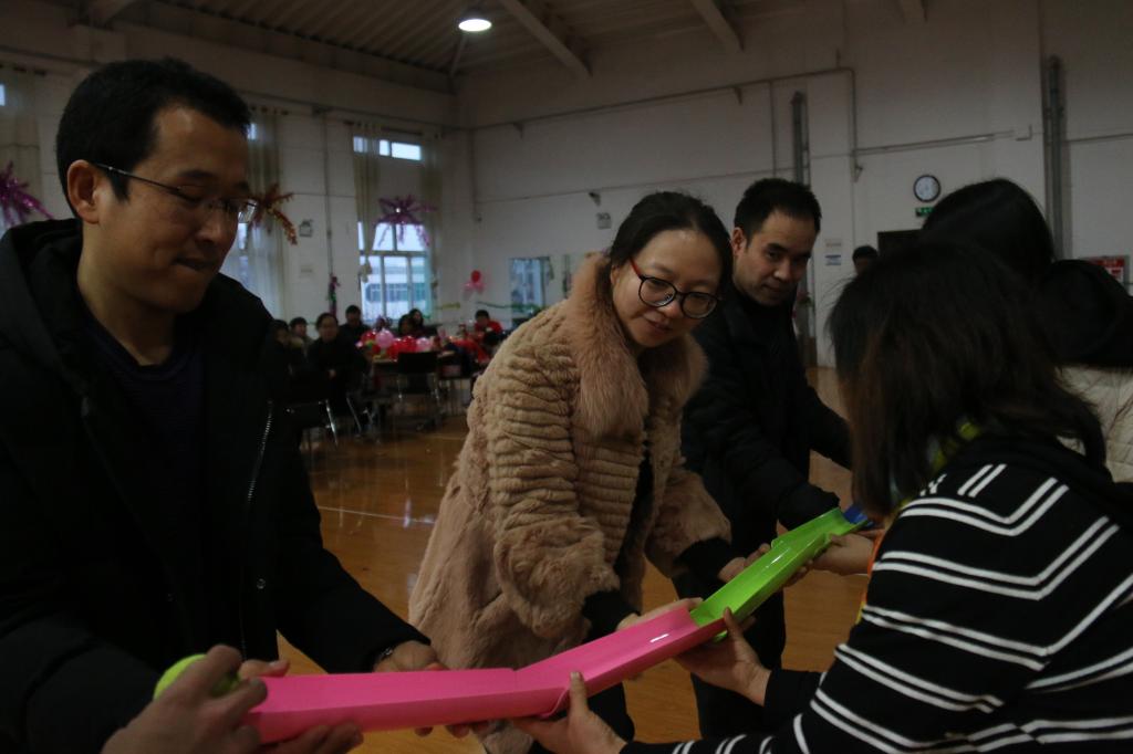 其次,由任雁、林乘庆两位老师带来歌曲《相亲相爱》,欢快的歌曲将全场气氛推向高潮。游戏“快乐传真”考验了老师们之间的默契;游戏“燃烧我的卡路里”则展示了老师们肢体的协调性,在动感的音乐中,老师们努力晃动自己的身体,千方百计将瓶内的小球晃出。林乘庆老师一首网络热播原创歌曲《回忆时光的浪》,赢得了全场热烈的掌声。游戏“接力传球”、“正话反说”引得全场爆笑不断。整个活动中还穿插了三次抽奖环节,“摇一摇”、“财源滚滚来”、“幸运之星”将学院精心准备的大礼包送给12位幸运的老师。在全体教职工合唱的《相亲相爱一家人》歌声中,联谊会接近尾声。