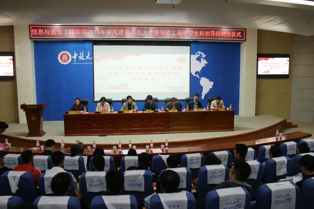 2019年学风建设动员大会暨领航工程研究生科创导师聘任仪式在瑾瑜国际会议中心隆重举行。出席此次大会的领导有学院党委书记曹凤才、院长杨风暴、科研副院长王明泉、院党委副书记兼副院长魏媛媛、信息与通信工程学科管理部主任陈友兴、生物医学工程学科管理部主任张权,学院全体辅导员和部分班主任代表也参加了会议。