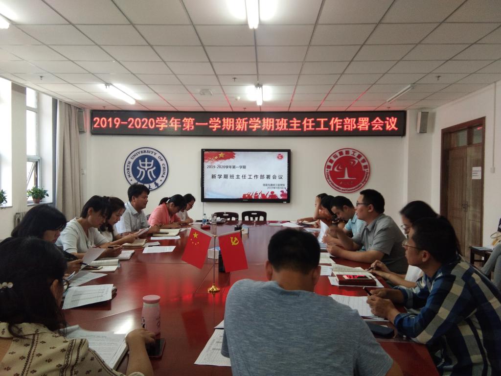 于9月3日下午四点半,在院楼713会议室召开新学期班主任工作部署会。院党委书记曹凤才、党委副书记魏媛媛和全体班主任出席了会议。