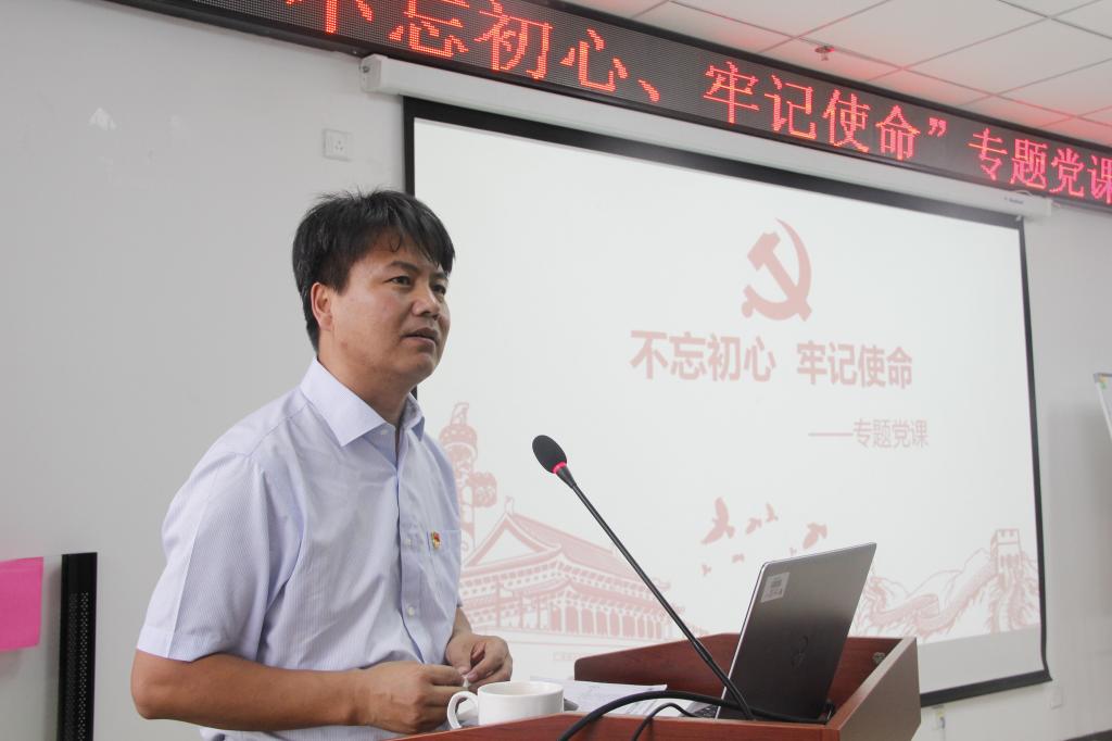 随后,曹书记就自己学习党的十九大精神和习近平新时代中国特色社会主义思想的收获、感悟与思考,与全体党员同志们做了分享。曹书记首先从中国共产党的“初心”是什么开讲:“初心”就是不忘历史、敢于担当、不忘人民;其次是共产党人为什么要“不忘初心”?因为“初心”是党的行动纲领、奋斗目标、是党前进的动力,是党的优良作风;以及共产党人如何做到“不忘初心”?曹书记倡导大家要坚定信念跟党走、直面使命敢当担、挺纪在前不逾矩、无私奉献有作为、立足岗位做贡献。最后,曹书记用“坚持提高党性修养、补思想之钙、固党性之元、铸党性之魂”,“平时能看出来、关键时刻能站出来,危机关头能豁出来”与大家共勉!