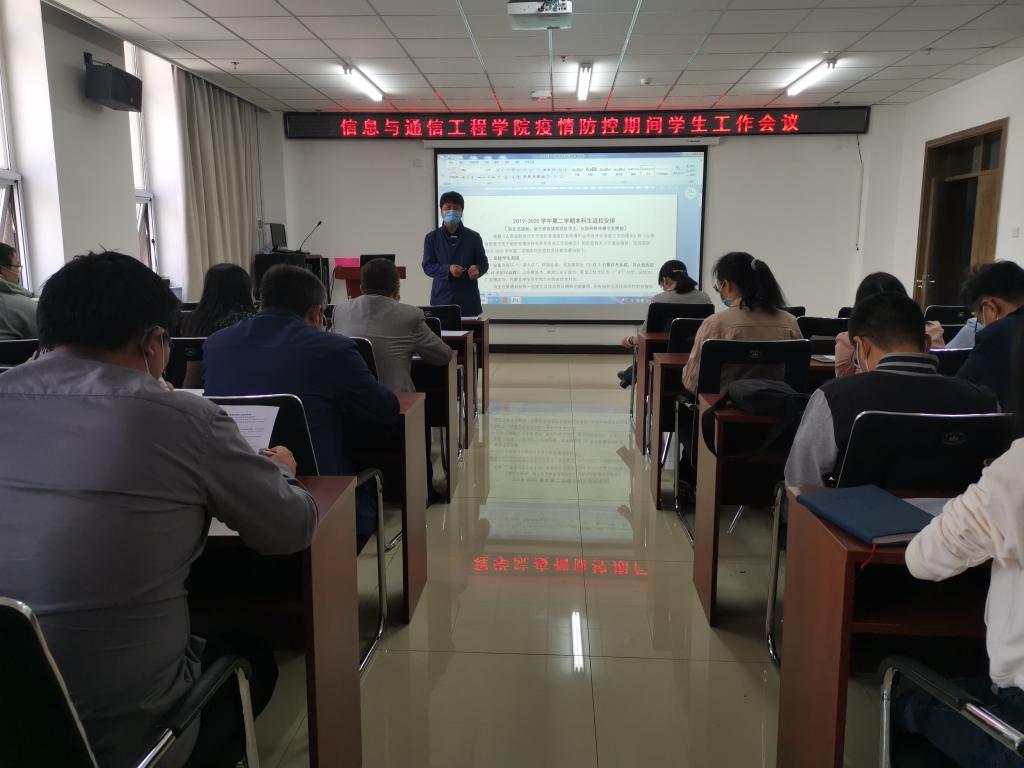 召开疫情防控期间学生工作会议,对本科生开学返校事宜、返校后学生管理及疫情防控工作作出具体安排。院党委书记曹凤才、学院全体班主任参加会议,会议由院党委副书记魏媛媛主持。