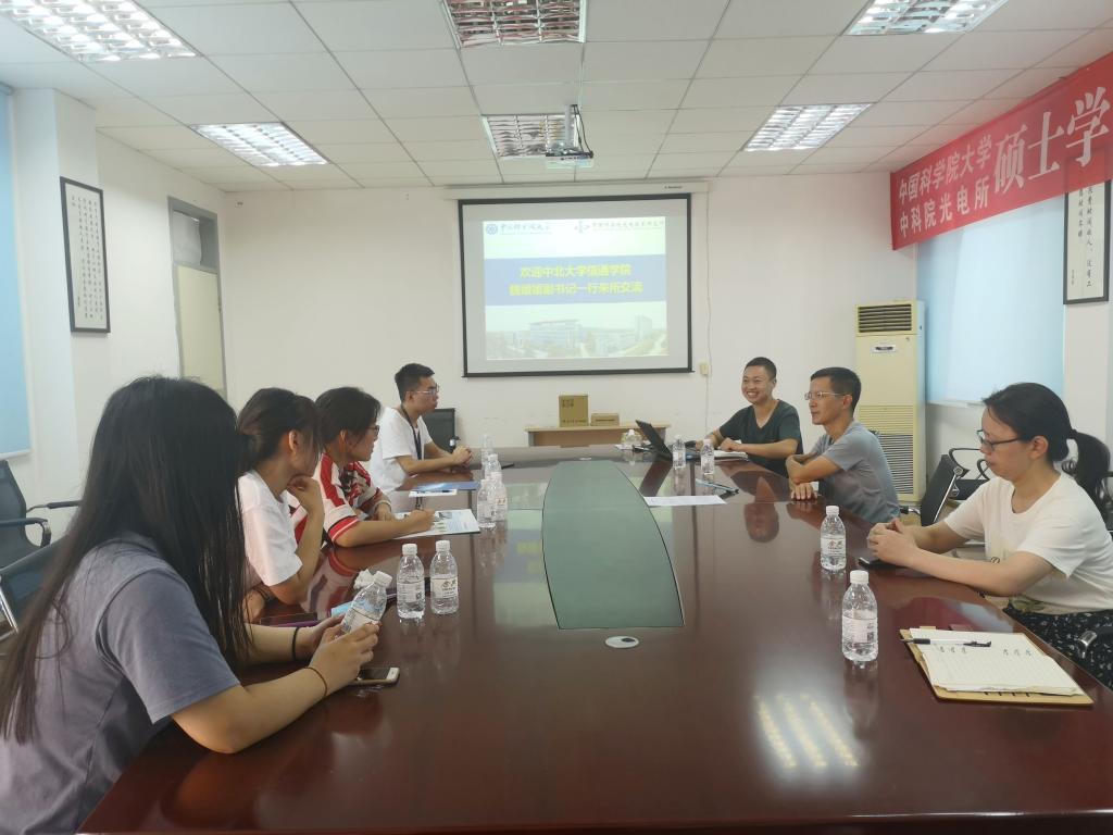 2020年8月26日学院党委副书记魏媛媛、办公室主任邢巍赴中国科学院大学光电技术研究所进行交流座谈。