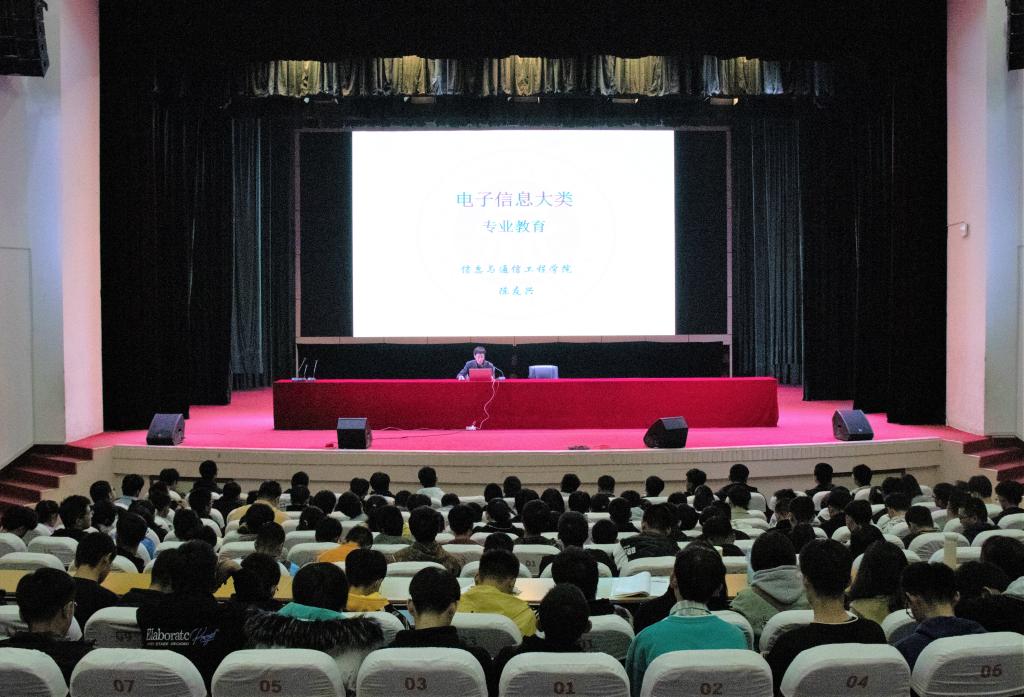 为使电子信息类新生更好地了解大类各专业的内涵与前景,提前培养专业意识,认清就业形势,10月25日下午4:30,学院在科艺苑举办电子信息类新生专业教育大会,2020级电子信息类全体新生加了大会。
