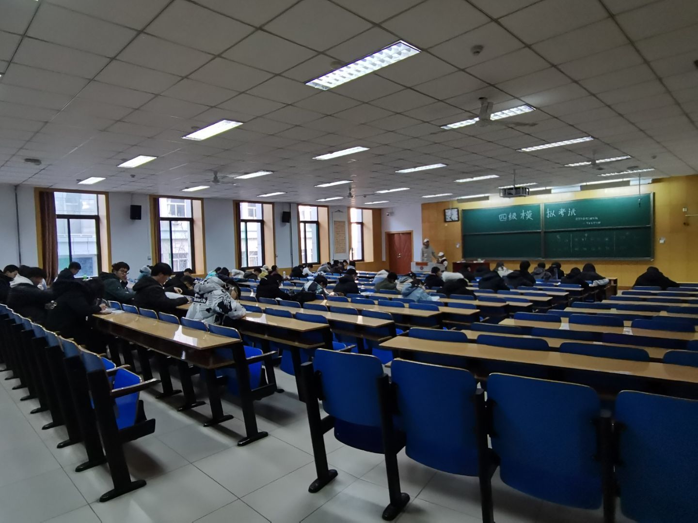 本次考试覆盖学生450余人,严格按照四六级英语考试的正规流程进行,考查范围全面细致,考场氛围严肃紧张,考试过程井然有序。在考验考生的词汇量、句型以及阅读理解等对英语基础知识掌握情况的同时,对考生把握考试时间、心态调节等方面等应试能力也做出了考验。监考人员由学院学生会学习部成员担任,严格按照考试要求进行入场检查、签到,收发试卷并维持考场纪律,营造出全真的模拟考场环境。