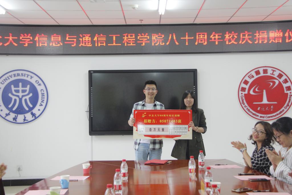 捐赠仪式上,72961班级捐款56100元,用于学院校友奖助学金资助项目;01073B1班级捐款20000元,用于信息对抗技术校友奖助学金资助项目;05071403班级捐赠价值6100元的“石雕日晷”1个及捐款23900元,用于电子信息工程专业校友奖学金资助项目。院党委副书记兼副院长魏媛媛分别与班级代表签署捐赠协议。学院党委书记曹凤才、院长杨风暴、副院长赵冬娥分别作为代表接受捐赠。