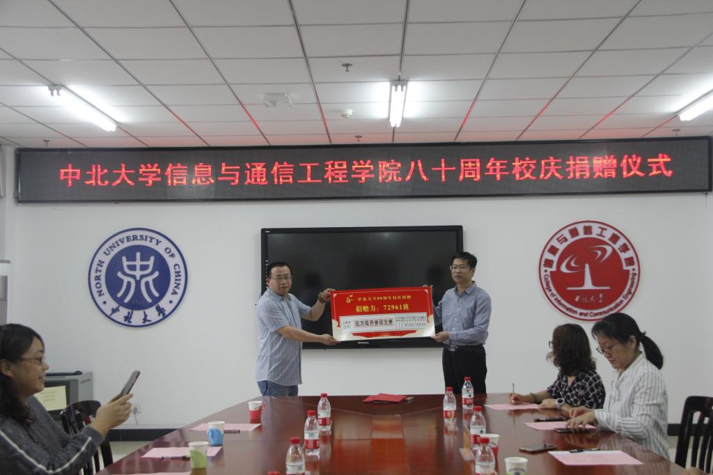 在院楼713会议室成功举办了八十周年校庆校友捐赠仪式。学院72961班校友张丽、王洪峰、刘宝华、刘文科、郎文杰;信息对抗专业01073B1班校友丁浩原、姚金杰;05071403班校友朱洪亮;学院全体院领导参加了此次捐赠仪式。
