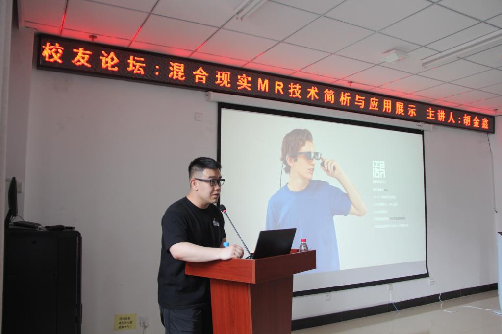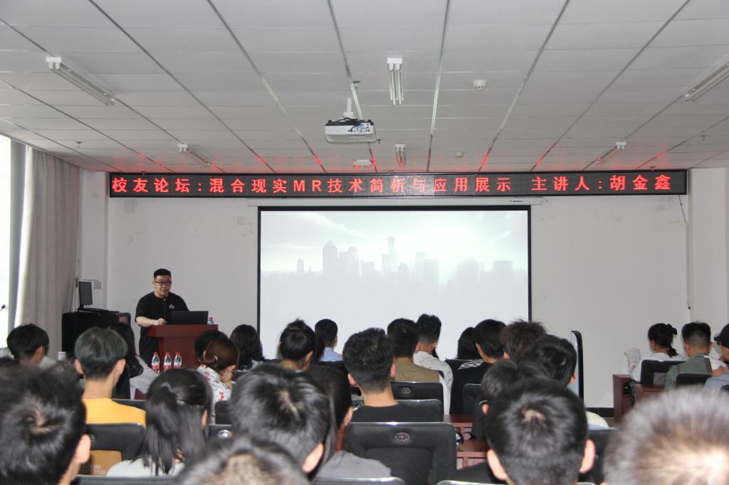 5月18日下午,在80周年校庆到来之际,校友胡金鑫应邀返校做了题为《混合现实MR技术简析与应用展示》的分享论坛。该论坛由院党委书记曹凤才主持。胡金鑫2009年毕业于麻豆a片