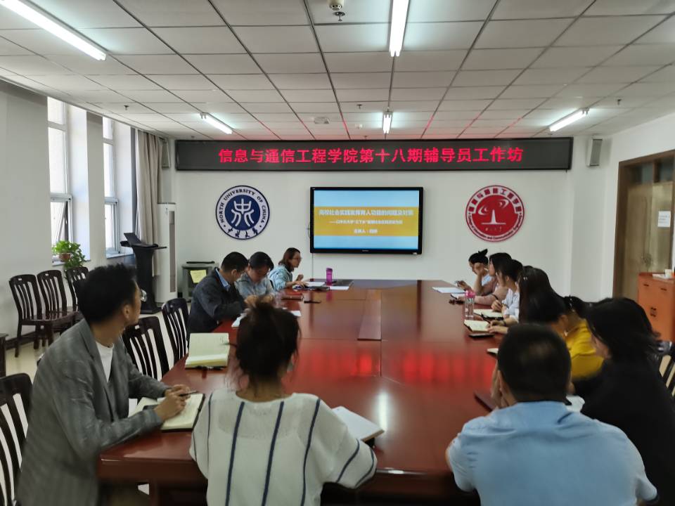 5月25日上午,第十八期辅导员工作坊在院楼715会议室如期开讲。本次工作坊由党委副书记兼副院长魏媛媛主持,辅导员闫婷担任第十五讲主讲人。