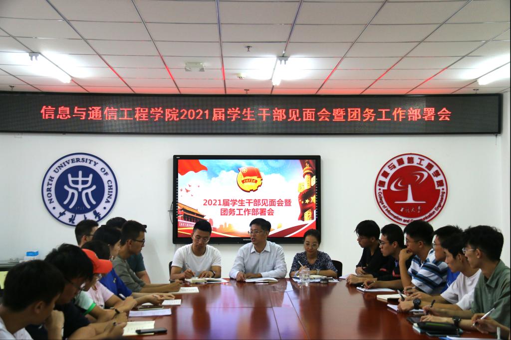 在院楼713召开了2021届学生干部见面会暨团务工作部署会。院团委书记闫婷、团委王彪老师及全体新任学生干部参加会议,院长杨风暴出席了会议并发表重要讲话。