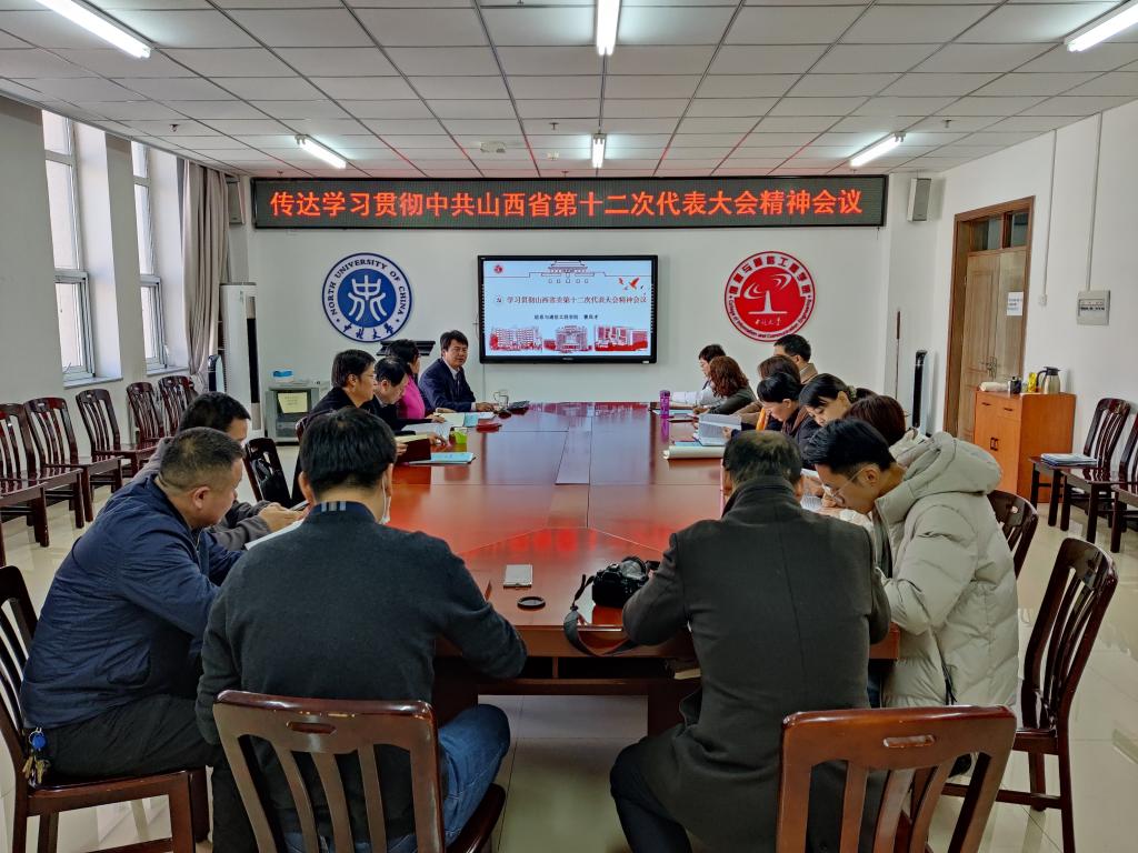 党委在科学楼B座713会议室召开传达学习贯彻中共山西省第十二次代表大会精神会议,理论学习中心组成员、系主任、党支部书记、科级干部参加了学习,机电工程学院党委书记罗建国列席会议。会议由学院党委书记曹凤才主持并领学。