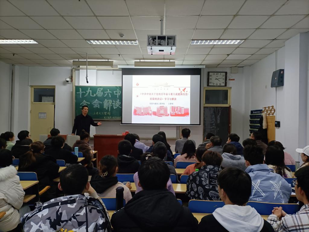 党委委员王黎明对接电子信息工程专业师生党支部。他号召师生党员一要切实提高政治站位,持续深入学习领会六中全会精神,把“两个确立”转化为做到“两个维护”的思想自觉、政治自觉、行动自觉;二要坚持以六中全会精神为指引,同党史学习教育紧密结合,弘扬伟大建党精神,从百年党史中汲取奋进力量,在新时代新征程中展现高校师生党员的责任和担当。