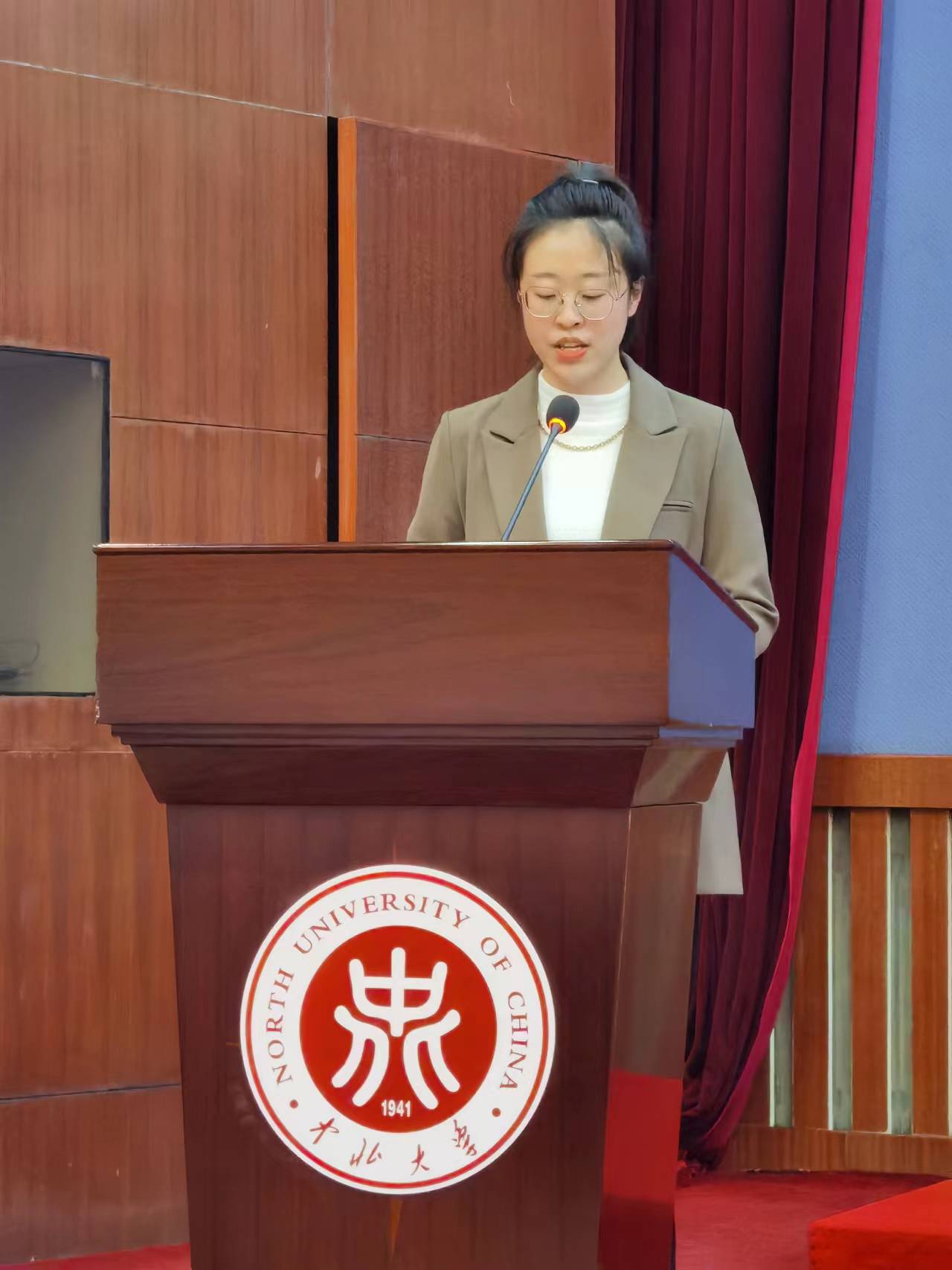 随后,优秀在校生代表吉泓洁同学、新生代表刘朝辉同学依次上台发言,分别分享了在研究生阶段学习与生活的经验与建议,以及作为一名研究生应当肩负的使命与重任。