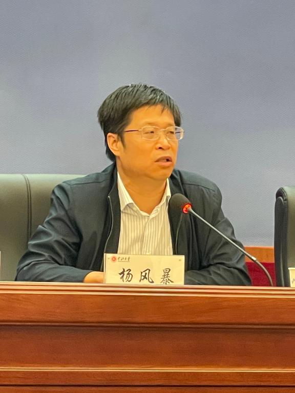 最后,学院院长杨风暴发表讲话,他对研究生新同学的到来表示衷心的祝贺和热烈的欢迎,并且寄语新生要为研究和学术而来,聚焦提高研究创新的能力,树立远大的理想目标,尽早开展个人的科研活动,同时激励学院2022级全体研究生不负青春,不负韶华,争取学有所成。