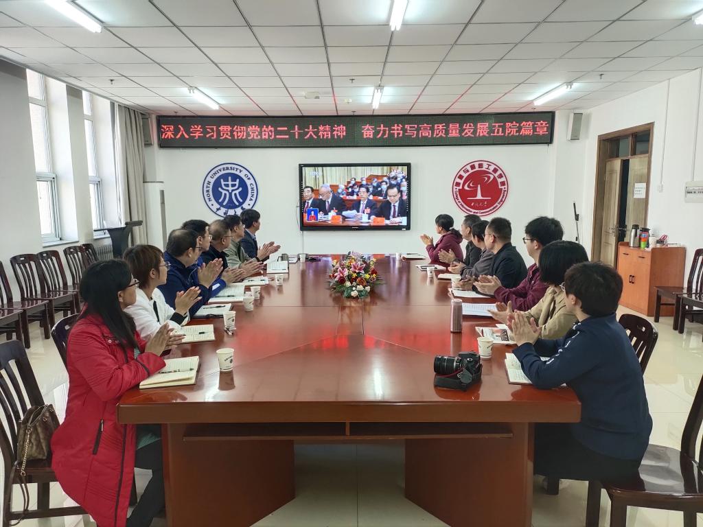党委书记曹凤才、院长杨风暴、党委副书记魏媛媛、各党支部书记、系主任及全体师生党员在科学楼713会议室和715报告厅、腾讯会议平台,通过线上线下共同收看了开幕会盛况直播。