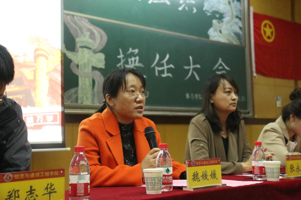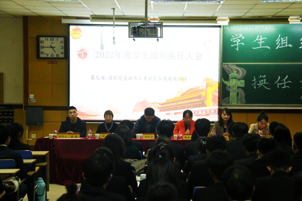 2022年度学生组织换任大会在09202H教室成功举办。学院党委副书记兼副院长魏媛媛、科研科科长郑志华、团委书记闫婷、学生科张永玲、王秋惠老师及本科生、研究生全体学生骨干出席大会。会议由院团委王彪老师主持。