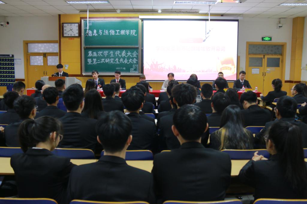 在09201H召开了第五次学生代表大会暨第二次研究生代表大会。院党委副书记兼副院长魏媛媛、团委书记闫婷、团委王彪老师、科研科王建萍老师应邀出席大会,学院98名学生代表参加本次大会。