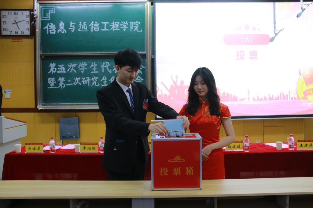第四次学生代表大会代表、第二次研究生代表大会代表。院团委书记闫婷宣读了选举结果。