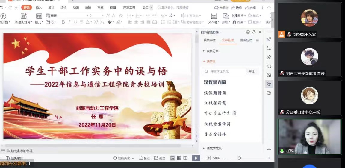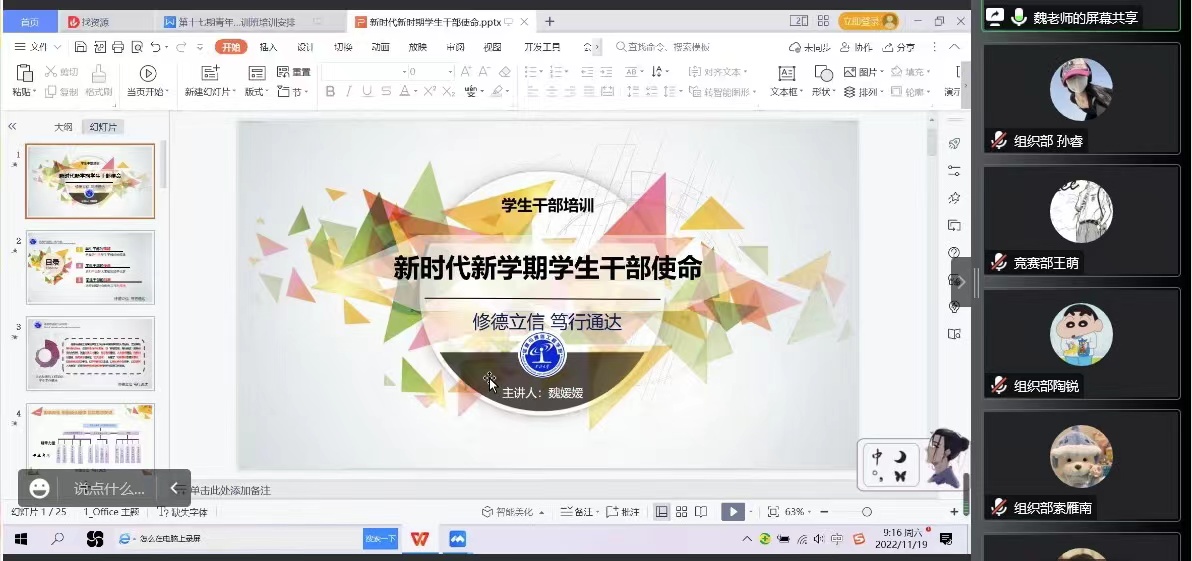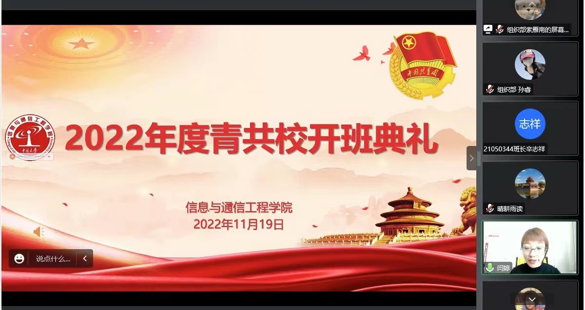 为进一步提高青年学子的思想政治素质,做好新时代党的助手和后备军,11月19日、20日,学院利用腾讯会议平台成功举办第十七期青共校培训班。学院党委书记曹凤才、党委副书记兼副院长魏媛媛、院团委老师王彪出席了开班典礼。典礼由院团委书记闫婷主持,麻豆a片