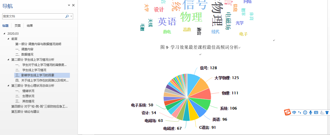 通过调查发现学生线上学习所困,多数同学提出了影响学习效果的因素,并提出相应的建议,能够帮助自身学习;学生现实所想即同学们对于开学后,如何保证学生吃、住、上课等安全问题尤为关注;心理所虑即湖北等重点疫区的学生要比其他地区的学生居家过程中更容易出现消沉闷闷不乐的负面情绪,同时,这类学生在食欲睡眠等生理方面跟之前相比出现更大的变化。另外,发现湖北籍同学非常担忧返校过程以及返校后的学习生活情况。