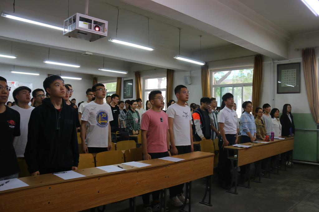 大会在神圣威严的《国歌》中拉开序幕,全体党员肃然起立,一起凑唱《国歌》,在铿锵有力、激情昂扬的旋律中感受祖国的力量和伟大。