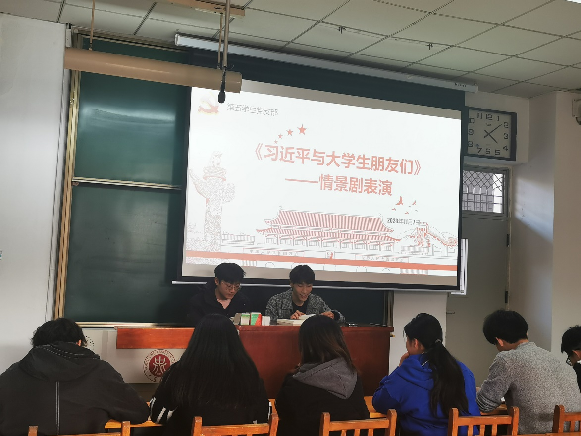 为深入了解习近平总书记,感受习近平同志以诚待人,言传身教的生动场景,2023年11月7日,第五学生党支部在11301T开展《习近平与大学生朋友们》学习活动,本次活动主题为“如何做好基层工作”,由支部副书记王鹏盛同志主持。