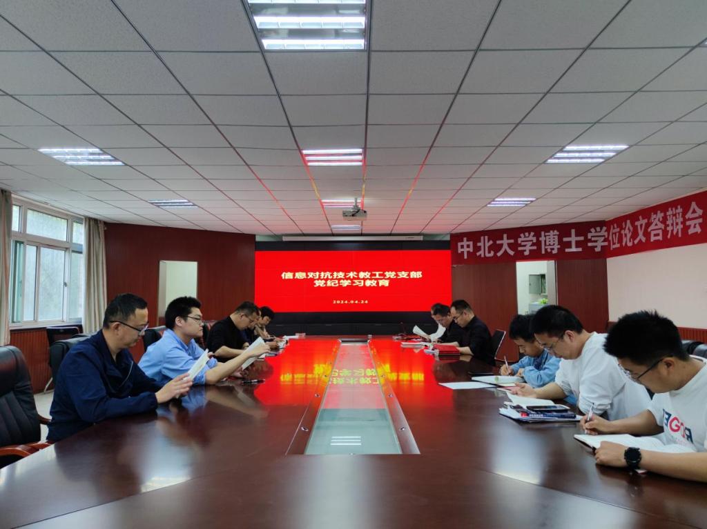 2024年4月24日下午,信息对抗技术教工党支部在无损检测楼201会议室开展党纪学习教育,集中学习《中国共产党纪律处分条例》。