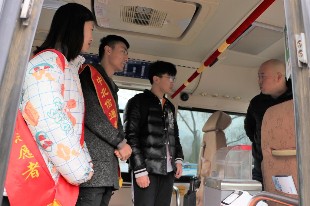 上午8点30分,党员同志们在校门口集合,丁汀同志向大家介绍了此次志愿活动的主要内容及注意事项,随后,全体党员统一身披绶带来到835支公交站牌处进行交通安全宣讲和交通疏导。在此过程中,党员同志们向广大同学倡导文明乘车,选择安全的出行工具,坐公交车既环保又安全,若选择手续不齐全的私家车可能会面临一系列安全隐患及口角争执问题。