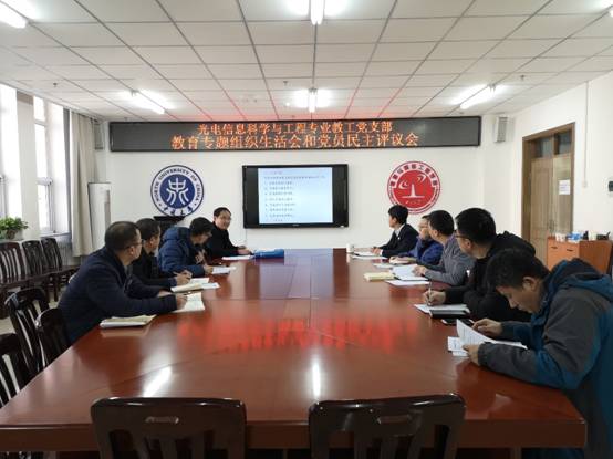 光电信息科学与工程党支部在科学楼713会议室组织召开“不忘初心、牢记使命”主题教育专题组织生活会和党员民主评议会,支部全体党员参加会议。会议由党支部书记张志伟主持。