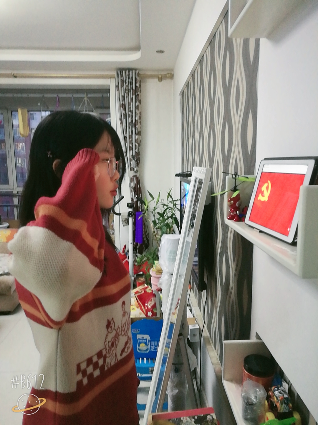 在分享会即将结束时,支部成员们身处祖国大江南北,五湖四海,却共同凝聚在党旗下,重温入党誓词。大家站在新时代的起点,坚持自己的初心,坚定自己的信仰,坚守自己的誓言。
