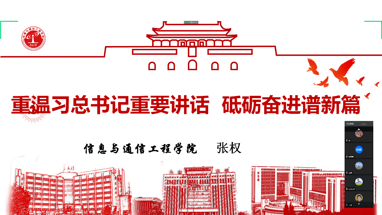 7月20日上午,生物医学工程教工党支部书记张权通过腾讯会议平台组织全体支部教师共同学习了习近平总书记视察山西重要讲话及重要指示精神。