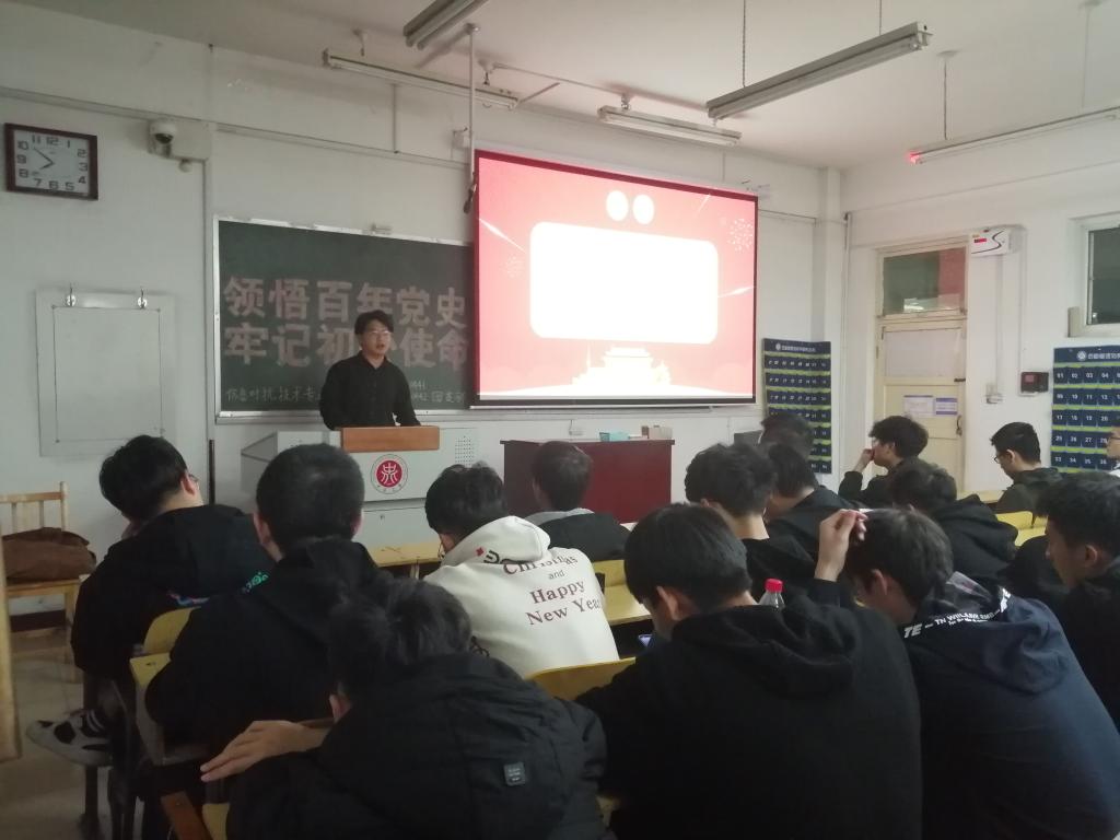 4月2日晚,信息对抗技术学生党支部在10307H教室带领19050441、19050442班团支部的同学们开展了第一场党史教育宣讲会。本次会议的主讲人是支部党员赵炅,学习的主题为“领悟百年党史,牢记初心使命”。